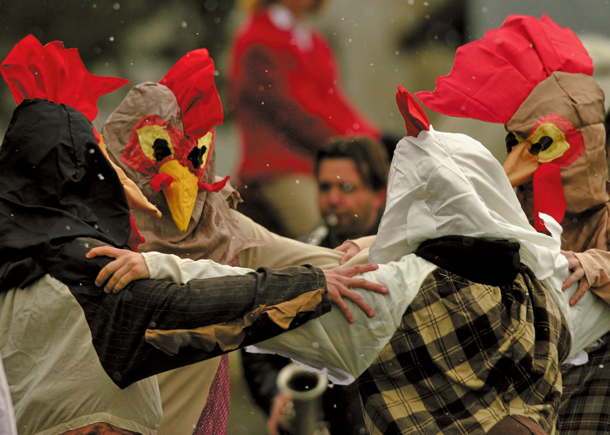 Posebno zanimljiv pokladni običaj baranjskih Mađara, Kakasütés („Pijetlovi“), održat će se 14. veljače u Vardarcu. Ovaj običaj uključuje svečanu povorku konjskih zaprega koja, uz vrisku, ciku i pjesmu, prolazi selom, dok mladići odjeveni u kostime i maske pijetlova silaze s kola i „plešu“ oko djevojaka i žena koje ih dočekuju ispred kuća. U okolici Našica, u selu Vukojevci, i ovih će poklada prošetati šareni „Vukojevački starcevi“ (7. veljače), običaj zaštićen kao dio hrvatske kulturne baštine.