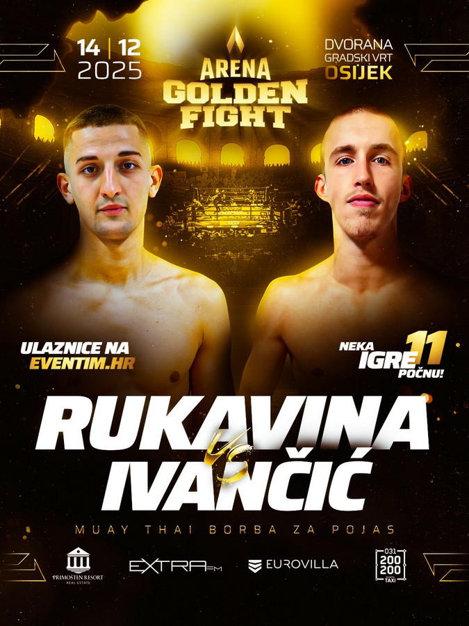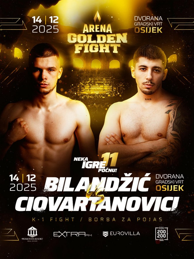 Arena Golden Fight 11 stiže u dvoranu Gradski vrt u nedjelju, 14. prosinca 2025., gdje će publika svjedočiti najvećem borilačkom spektaklu u gradu do sada. Užarena atmosfera i borilačka energija K-1, muay thaia i bareknuckle borbi ispunit će dvoranu. Vrhunac večeri su dvije borbe za pojas prvaka! Prošlogodišnji Golden Fight 7 ispunio je Gradski vrt do posljednjeg mjesta, a za ovogodišnje izdanje organizatori najavljuju još veći spektakl i još višu produkcijsku razinu.
